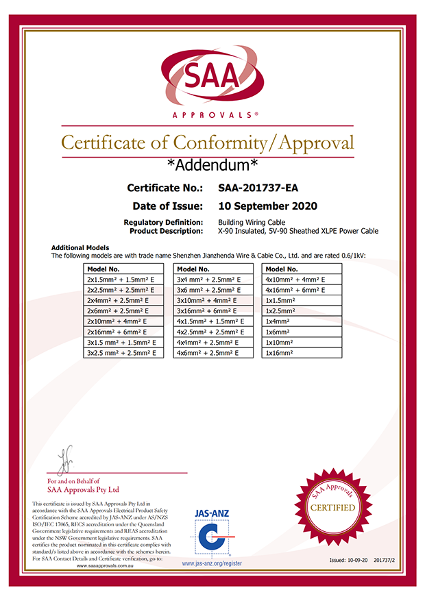 深圳建圳達(dá)電線電纜有限公司,成立于2000年,是一家電線電纜制造商,我們通過了世界各地不同市場(chǎng)的多數(shù)認(rèn)證,如:CCC、RoHS、CB、SAA、TUV、VDE、PSE、BPS、UL、CSA。我們根據(jù)定制產(chǎn)品不斷更新新的認(rèn)證。經(jīng)過數(shù)十年的發(fā)展,我們與來自世界各地的客戶建立了長(zhǎng)期的合作關(guān)系。我們?cè)?jīng)是菲律賓機(jī)場(chǎng),,柬埔寨的電力站,美國(guó)的醫(yī)院,工廠,埃塞俄比亞的水電站項(xiàng)目。我們是一家值得信賴的電線供應(yīng)商。